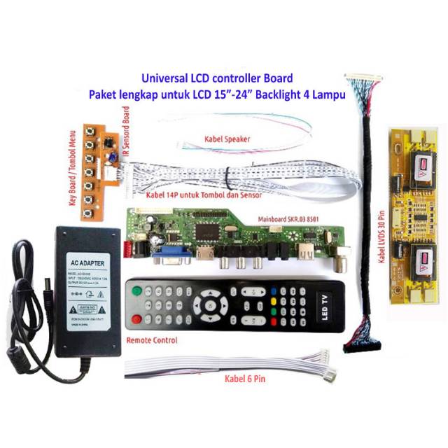 Universal Lcd Tv Board Paket Lengkap Panel 15 24 Backlight 4 Lampu Ccfl